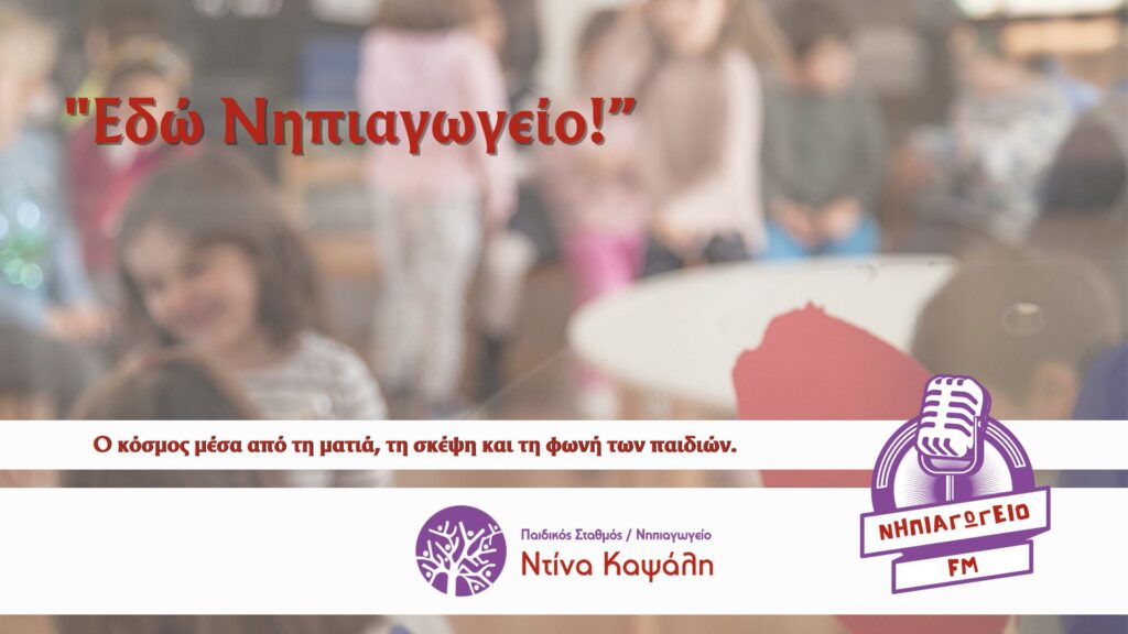 “Είμαστε τα παιδιά του Νηπιαγωγείου “Ντίνα Καψάλη” στα Μελίσσια και αυτός είναι ο ραδιοφωνικός μας σταθμός! Συνεργαζόμαστε, συζητάμε, διαφωνούμε, βρίσκουμε λύσεις…. Επιλέγουμε θέματα που μας ενδιαφέρουν, σκαρώνουμε τις δικές μας ιστορίες, διαλέγουμε τις αγαπημένες μας μελωδίες. Μοιραζόμαστε αρμοδιότητες, αναλαμβάνουμε ευθύνες, ακούμε και βοηθάμε ο ένας τον αλλο, λέμε τη γνώμη μας ελεύθερα και…. έτοιμη η …